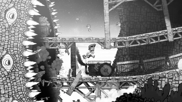 蠕虫冲刺手机版是一款非常有趣,有着自己独特风格的横版跑酷逃生类游戏,又名逃离蠕虫,是来自端游移植而来的手游,由unity引擎打造而成的,采用了非常独特的黑白卡通画风,所有画面全都是手绘而成,玩家在游玩的时候还有各种奇异的生物从场景中略过,给玩家带来一种独特新奇的游戏体验。游戏玩法非常简单,玩家需要逃离恐怖蠕虫的追击,一路上你会遇到各种各样的障碍物和机关,你需要时刻注意躲避,不能因此停止你的脚本,不然你将直接被恐怖蠕虫所吞噬。蠕虫冲刺与市面上其他跑酷游戏不同的是它有非常多的路线,有的能够让你的甩开蠕虫一大截路,也会让你绕远路直接导致难度升级,充满了未知性,也让游戏的趣味性大大增加,非常有趣,感兴趣的小伙伴们可千万不要错过哦。