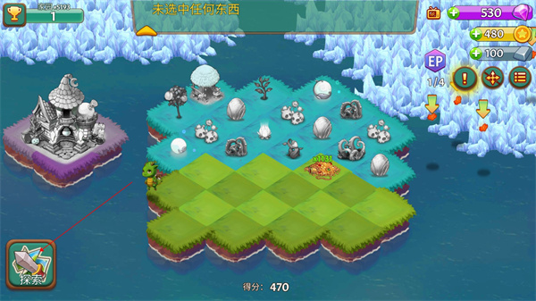 1、首先我们进入合合大陆游戏,刚进入游戏我们没有是资源,所以这个时候我们需要点击坐下角进行探索;
