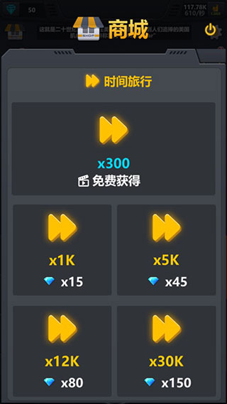 4、点击获得一定时间加速,时间加速可以转换成大量能源。