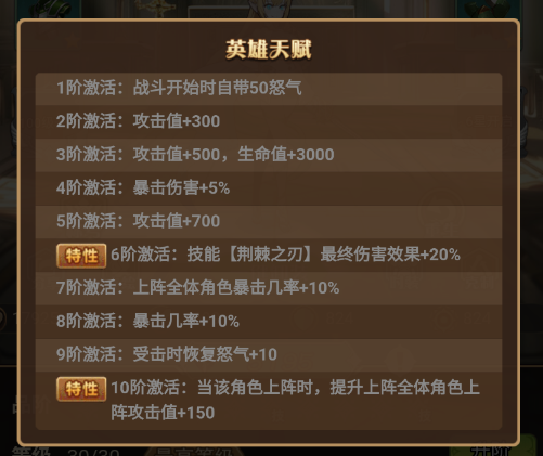 刀伤:40%概率对目标附加刀伤,每秒造成30%攻击的伤害,持续8秒。