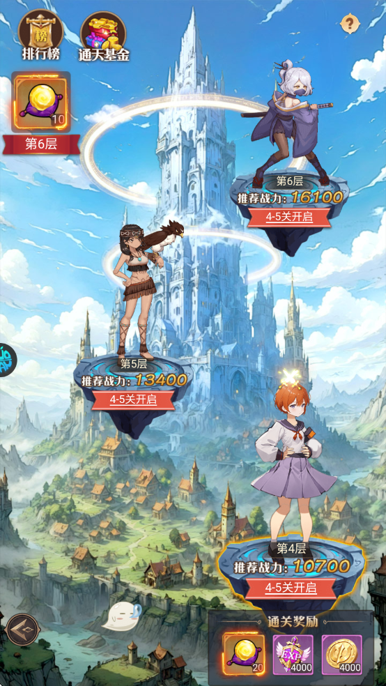 6、挑战通天岛可以获得进阶魔核、经验和金币,若未通关时可以重复用进行挑战,每一层只能通关一次,无法再次挑战。