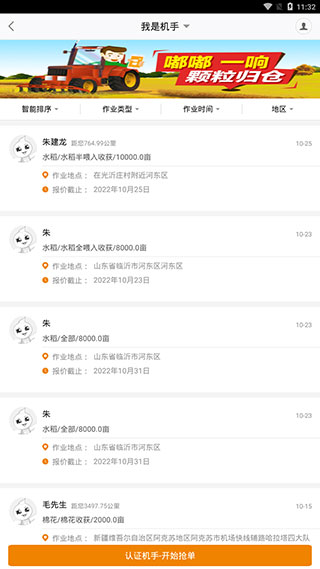 3、然后点击上方的下拉框,切换至【我是机手】页面。