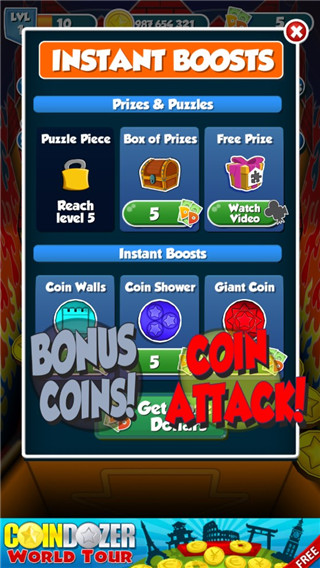 1、采用3D视角设计,为你带来更为逼真的推硬币体验!2、符合现实的物理撞击特性!