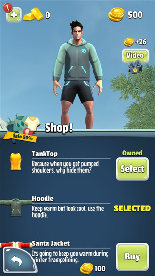 选择,升级和自定义您的角色。作为运动员跳跃,达到惊人的高度!每个人物都有自己独特的物理学!