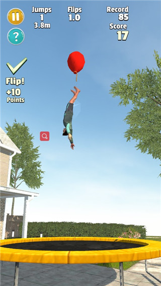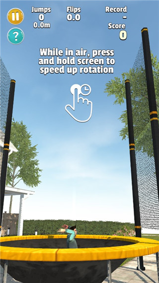 5、玩家需要在蹦床上完成前、后空翻等特殊动作来获得高分数;