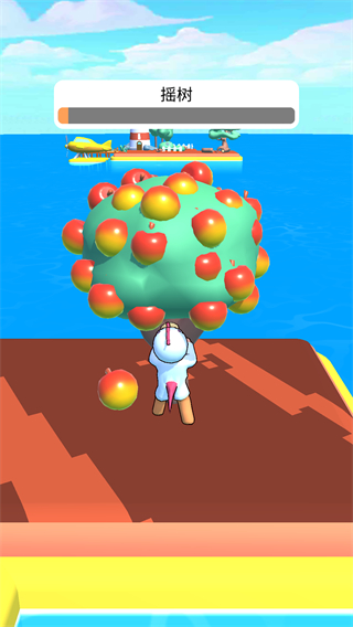 4、通过左右拖动屏幕可以操作角色进行摇树,将果树上的果实摇落。