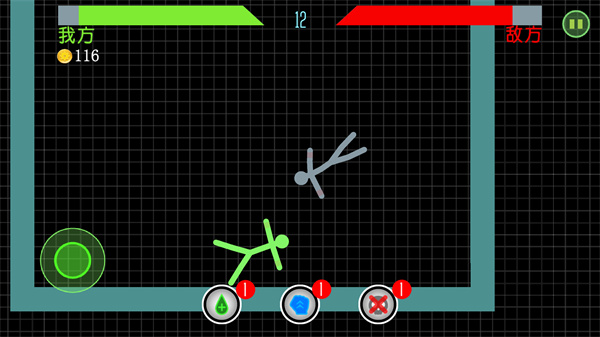 1、通过一个摇杆控制火柴人,摇杆可以左右方调整设置,玩家可以根据自己的操作手感进行随意切换;