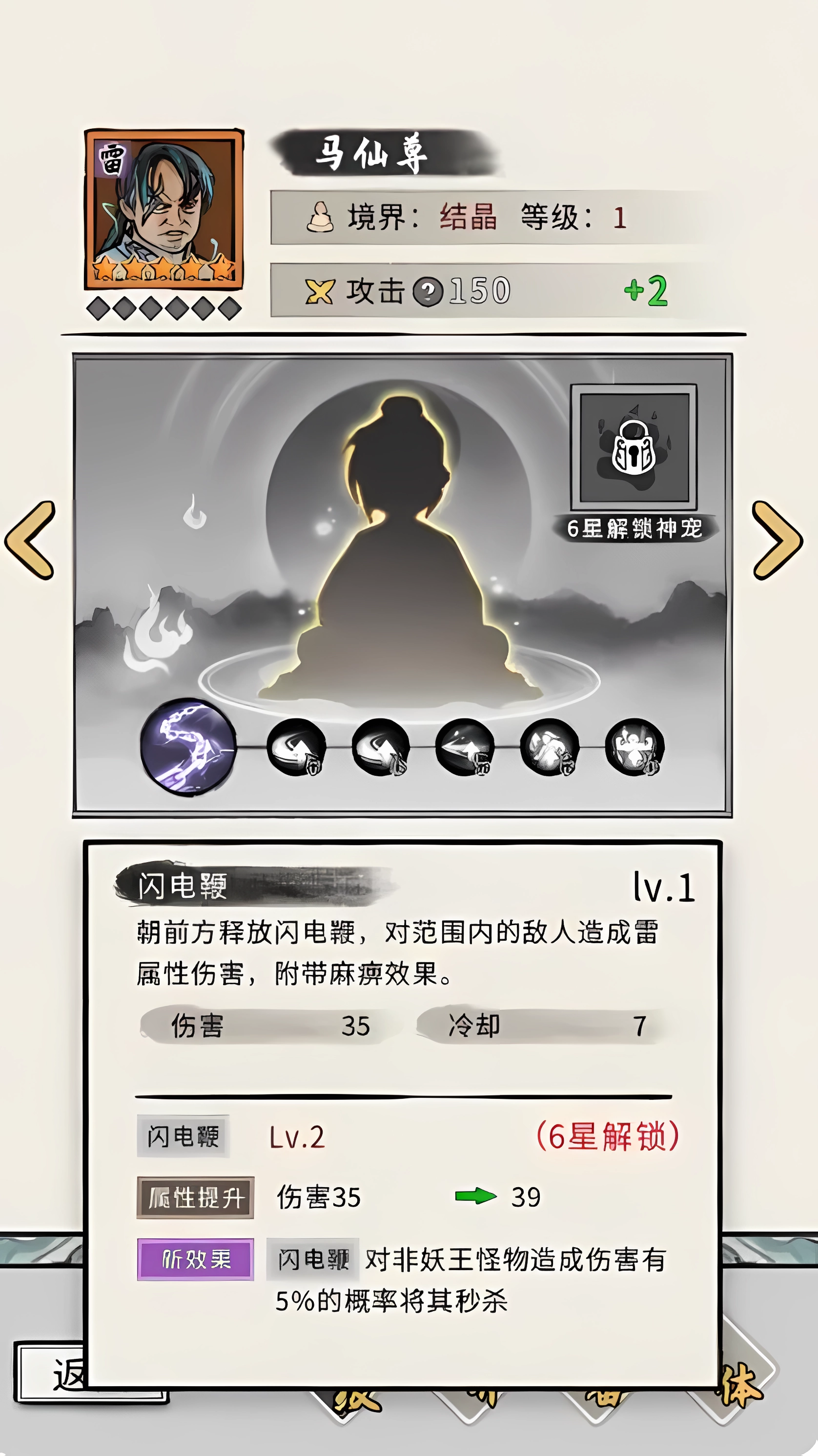 其中6星的秒杀效果能显著提升马仙尊对抗大量小怪时的清怪效率,是比较重要的一个境界效果。