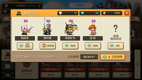 游戏中有丰富的怪物种类和宝藏系统,玩家可以通过挖矿和爬塔获得资源。挖矿需要时间,但能获取大量金币;爬塔则每天有限次数,每次推进都能得到奖励。每个勇士都有独特技能,合理搭配阵容可以轻松应对各种挑战。