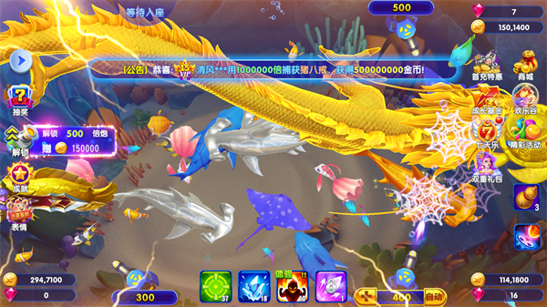 全新神器系统,经典街机捕鱼体验,超高爆率,让您轻松秒杀!
