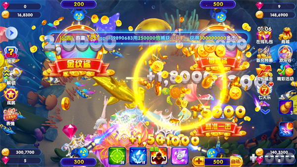 游戏中还有丰富的福利和高爆率玩法,提供多种鱼炮和定制化武器,让玩家体验到真正的“爆机”快感。关于BOSS打法,建议选择适合自己的高倍率炮台,并灵活应对小鱼的干扰。此外,召唤道具也是一个提升收益的好帮手,但使用时要注意时机和策略。