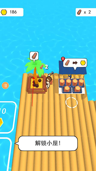 3、卖木头获得大量金币后,来到木筏边缘用金币扩大自己的领地。