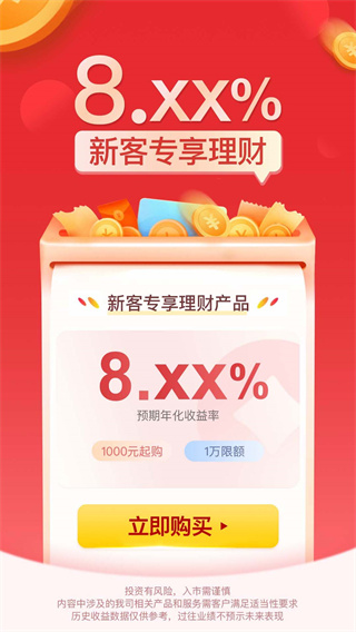 优选固收理财和基金定投等专区,总有一款适合您。