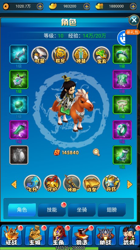1、穿戴装备能够让游戏角色大幅提升战力。