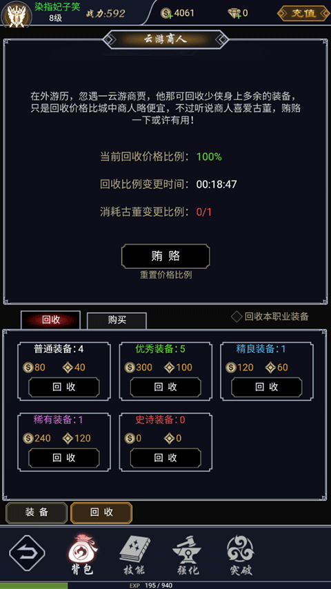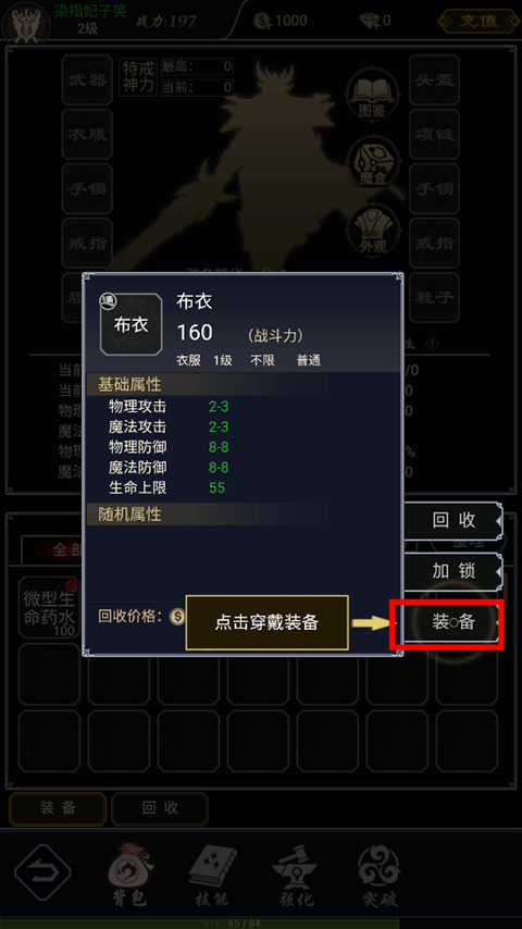 5、点击对应的装备,可以查看具体的信息,右侧还可以进行装备,不需要的回收;
