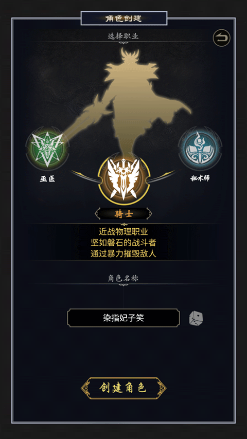 1、进入游戏,先选择自己的职业和昵称;
