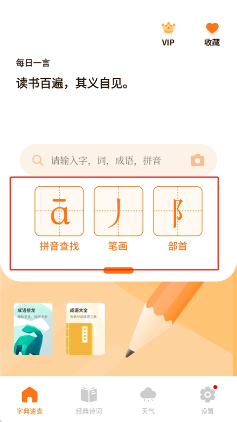 1、首先打开字典速查软件,可以通过首页的三种方式来识字