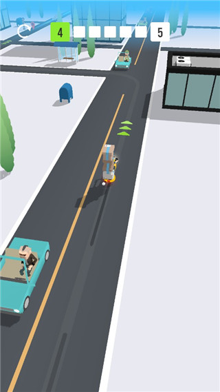 4、途中要注意收集有用的道具,这些道具可以让你拥有飞跃、急转弯等特殊技能,让你在途中遇到危险也能顺利通过,节约送快递的时间,轻松到达目的地,就可以进入下一个关卡了。