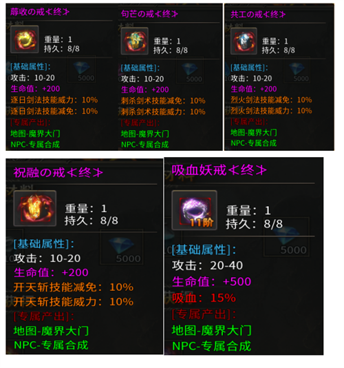 1、副装戒指可别小瞧了,通过专属合成,消耗钻石提升它的等级,技能威力会大幅增强。原本伤害平平的技能,经过强化后,直接变成杀敌利器,一套技能下去,敌人非死即伤。同时,吸血属性也会增加,打怪时就像拥有了一个移动的血库,源源不断地补充生命值,让你在战斗中越战越勇。