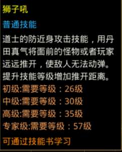 2、博学多识的道术士擅长治愈、用毒、隐身、书符,还可以召唤骷髅和神兽作为自己的护法。但与世无争的信念使道术士的攻击力平平,比起在前方作战,他们更适合在后方支援自己的同伴,同时,由于道家坚信万物平等,对神鬼皆敬而远之,不承认“神”有着高于常人的地位,所以对魔法的抵抗能力也很强。为了纪念道家的创始人,玛法大陆上的道术士们都喜欢自称虚天的后人。也许并不适宜用“强大”来形容这些 虚天的信徒,但道术士无疑是玛法大陆上最受尊重的职业。