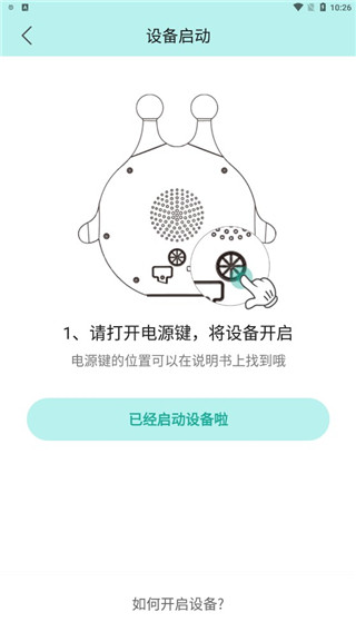 3、打开机器人的电源键,将设备开启,然后点击已经启动设备啦;
