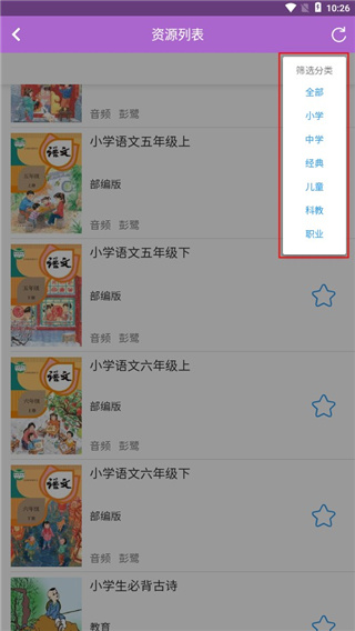 用户还可以根据自己的喜好将自己喜欢的各种书籍资源添加到书架上,这样就可以随时进行观看学习了,平台还会根据用户的阅读记录及喜好实时推送用户感兴趣的内容,用户可以随时进行查阅,用户还可以把自己的喜欢的内容进行收藏,或者一键即可分享,方便自己快速学习,跟着软件学习朗诵学习,可以逐句点击定位跟读,更好的提高自己的口才和语感,非常的实用。