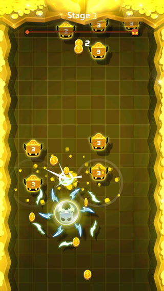 游戏玩法:单单就游戏玩法来说,还是十分简单的,只需要简单的通过点触屏幕来操控四周环绕飞刀的怪物,以消灭沿途而来的敌人为目标,击杀能够获得金币。