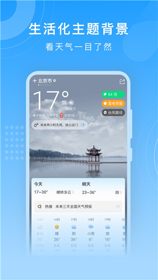 1、沉浸式的天气背景和界面,精美简约2、天气实时预警,未雨绸缪,一手掌握