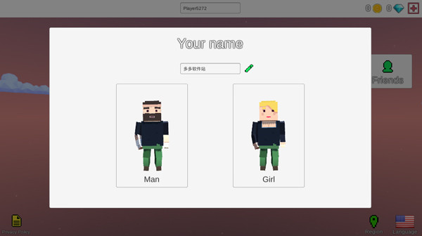 1、下载安装好游戏,进入游戏,输入名字和性别;