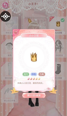不同于公主,我们小王子的王冠是斜戴的。古典纯金的质地,小巧简单的样式。既显出了王子尊贵的身份,又体现了他的不拘一格。获得方式是主线121话S评分掉落