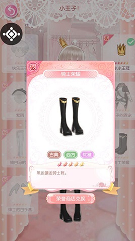 5、鞋子:骑士荣耀、 属性:古典,西方,优雅
