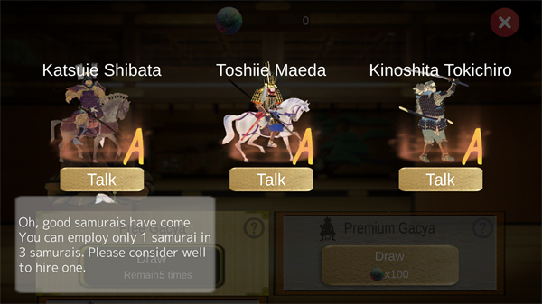 在超过200多个武士中成为武士军阀并统一日本全国!