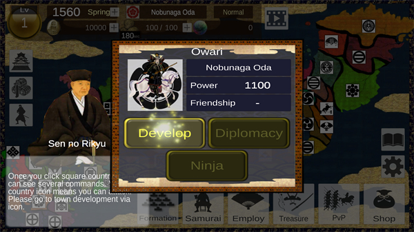 1、一款以统一天下为目的的架空于日本战国时期的策略游戏。2、通过发展内政、与他国外交,不断提升自己的国力。