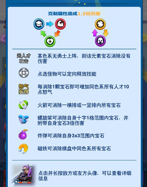 5、每个勇士颜色之间还有相互克制的作用,玩家可以根据克制关系出战不同颜色的勇士。