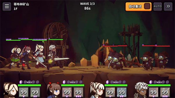 战斗以赚取升级材料,宝石和金币,不断培养英雄。