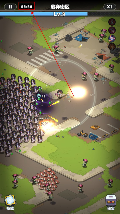 7、游戏左上角为冒险时间,玩家需要在这个时间内抵御住僵尸的进攻,并将最后一只BOSS消灭即可获胜。