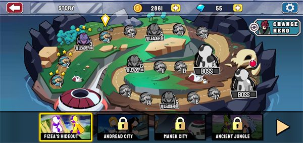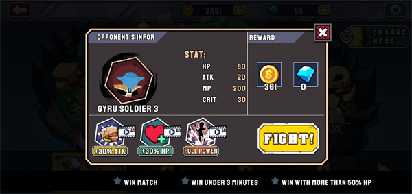 4、选择好关卡,点击FIGHT即可开始闯关;