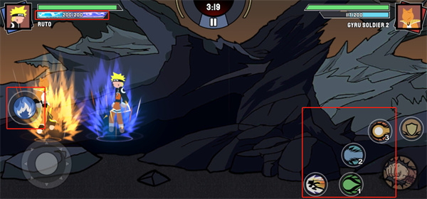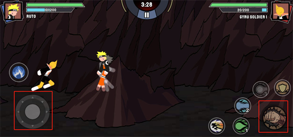 5、通过左下角的摇杆来进行移动,通过右下角的攻击按钮来进行攻击;