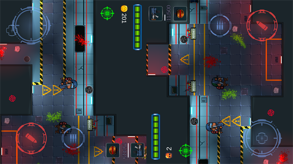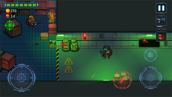游戏采用独特的Q版画风,以轻松明快的方式演绎紧张刺激的生存射击挑战。在自上而下的俯视视角下,玩家需要操控角色灵活应对各种太空僵尸的袭击,利用丰富的武器装备,在不同难度的关卡中完成射击任务。每一局的任务目标清晰明确,通过快速精准的射击操作击败敌人,积累足够的金币后即可升级武器和角色能力。