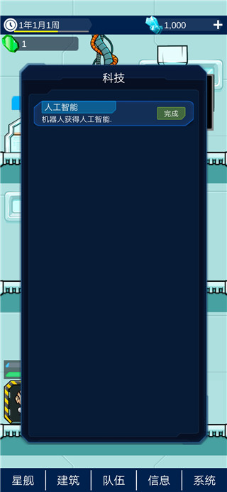1、下载好游戏后,首先需要在【星舰】中的【科技】处建造一个人工智能,它会帮助你完善基地。