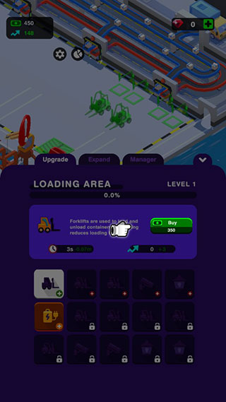 5、点击游戏屏幕,添加集装箱,把它们装满,运输这些货物,升级,然后赢取胜利!