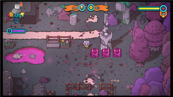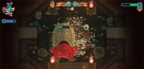 3、与塞尔达一样,草丛和瓶瓶罐罐都可以打破,有几率掉钱和道具、贴纸。草可以用火把点燃成片烧掉。起火的草地和火盆、敌人,可以用玩具火柴枪或黑胶盘攻击带火点燃敌人。