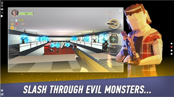 1、超可爱的画风,3D视角让玩家身临其境,诡异的空间,多样化的场景,激烈的厮杀,热血澎湃。2、多样化的游戏武器,需要赚取更多的金币来购买强大的武器去消灭更强的怪物,打击感很强。