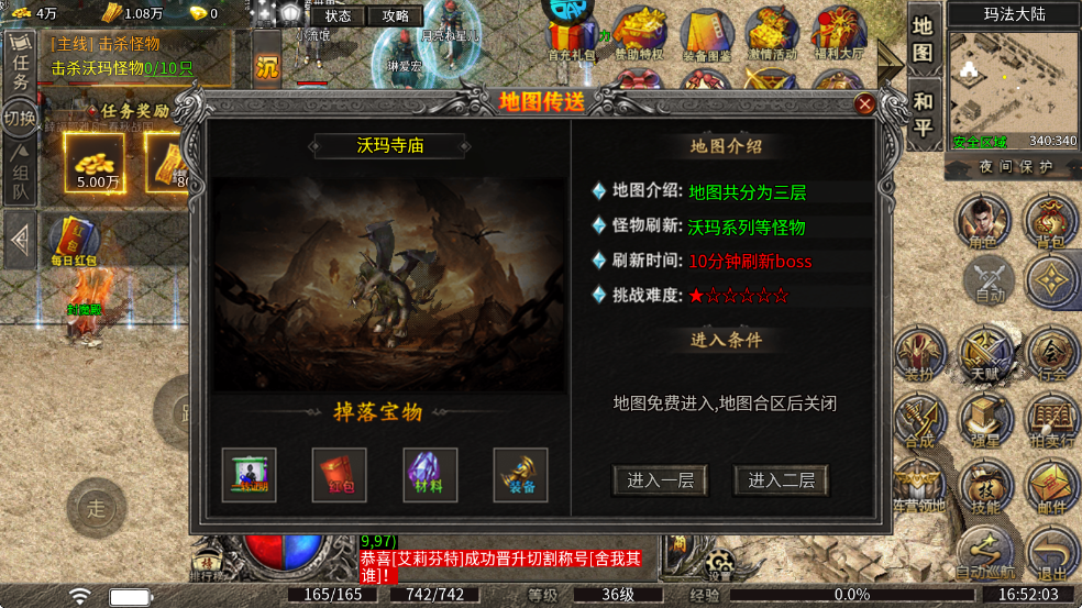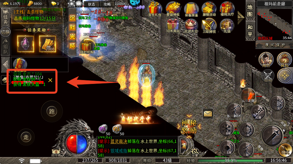 3、挂机打怪轻松升级,击杀怪物爆高级装备,分分钟成为超级战神!