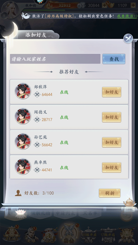 3、在搜索框内输入好友的昵称即可发送添加好友申请。