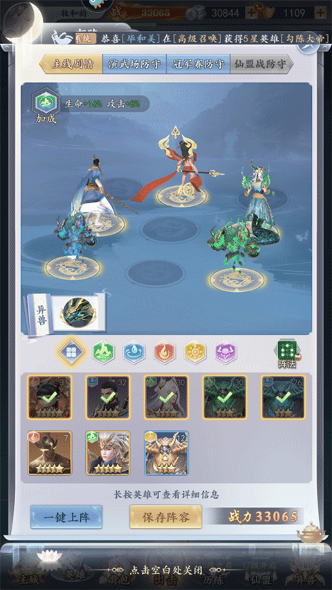 英雄需要进行布阵,分布在前、中、后位置上进行战斗。