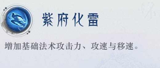 四技能:紫府化雷:增加基础法术攻击力、攻速与移速。