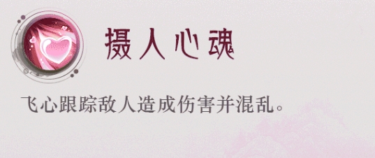 二技能:摄人心魂:飞心跟踪敌人造成伤害并混乱。