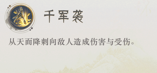 二技能:千军袭:从天而降刺向敌人造成伤害与受伤