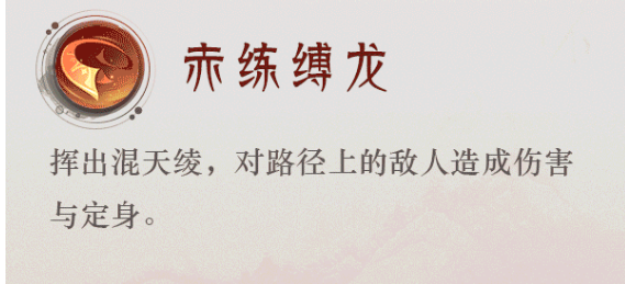 三技能:赤炼缚龙:挥出混天绫,对路径上的敌人造成伤害与定身
